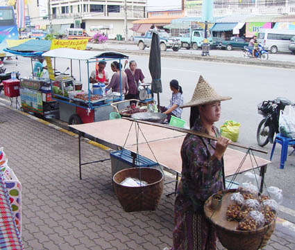 屋台や出店、小さな食堂では(2012年11月)麺類やご飯モノは20〜40バーツでした。