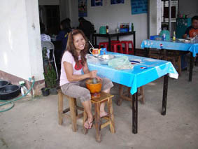 毎日の食事は小さなレストランや屋台です。日本語はおろか、英語もほとんど通じません。食事と共に出される水も安全とは限りません。こんな店で食べる本当のタイ料理は格別です。